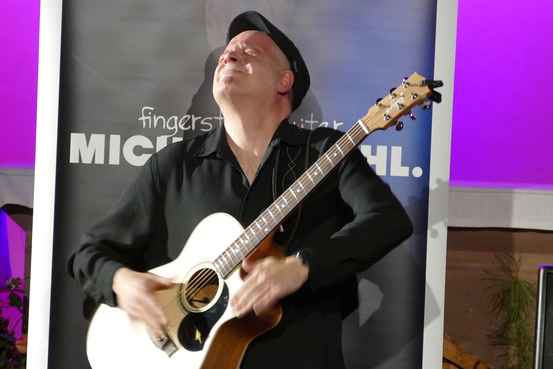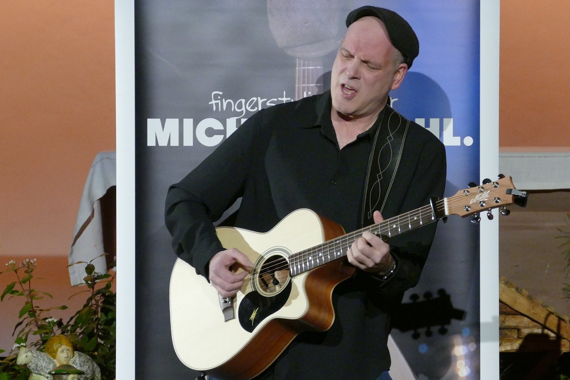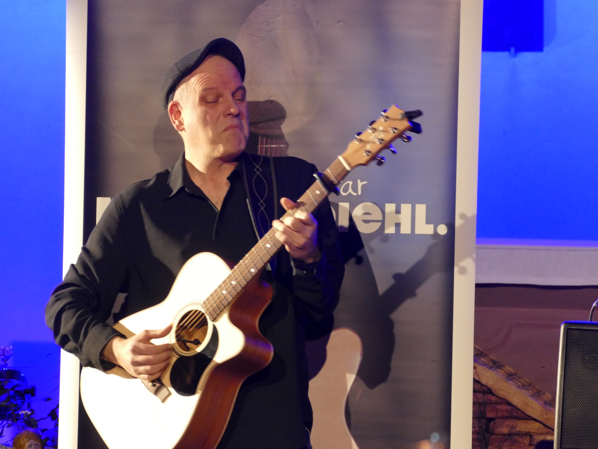 Fingerstyle Gitarrist Michael Diehl verstand es am Sonntag, 18.01.26, auf seine ganz besondere Art, die rund 60 Zuhörer:innen zu begeistern. Der musikalische Vortrag seiner Kompositionen war feinsinnig, melodisch elegant, oft perkussiv und technisch höchst versiert. Er überzeugte mit seinen berührenden Kompositionen, die ganz ohne Gesang Gefühlen und Phantasie weiten Raum boten, und einer überragenden und mitreissenden Spieltechnik. Michael liess uns in kurzen Hinführungen an seine Gedanken und Erlebnissen teilhaben, die zu neuen Songs führen: etwa Bilder von Flüchtenden auf dem Meer, Liebeskummer, Corona-Lockdowns oder eine Hommage an Gitarristenvorbilder. Nebenbei stellte er auch seine beiden australischen Maton-Gitarren eingehend vor, und wusste seine Moderationen mit Anekdoten, Wissenswertem und Nachdenklichem abwechslungsreich zu gestalten.