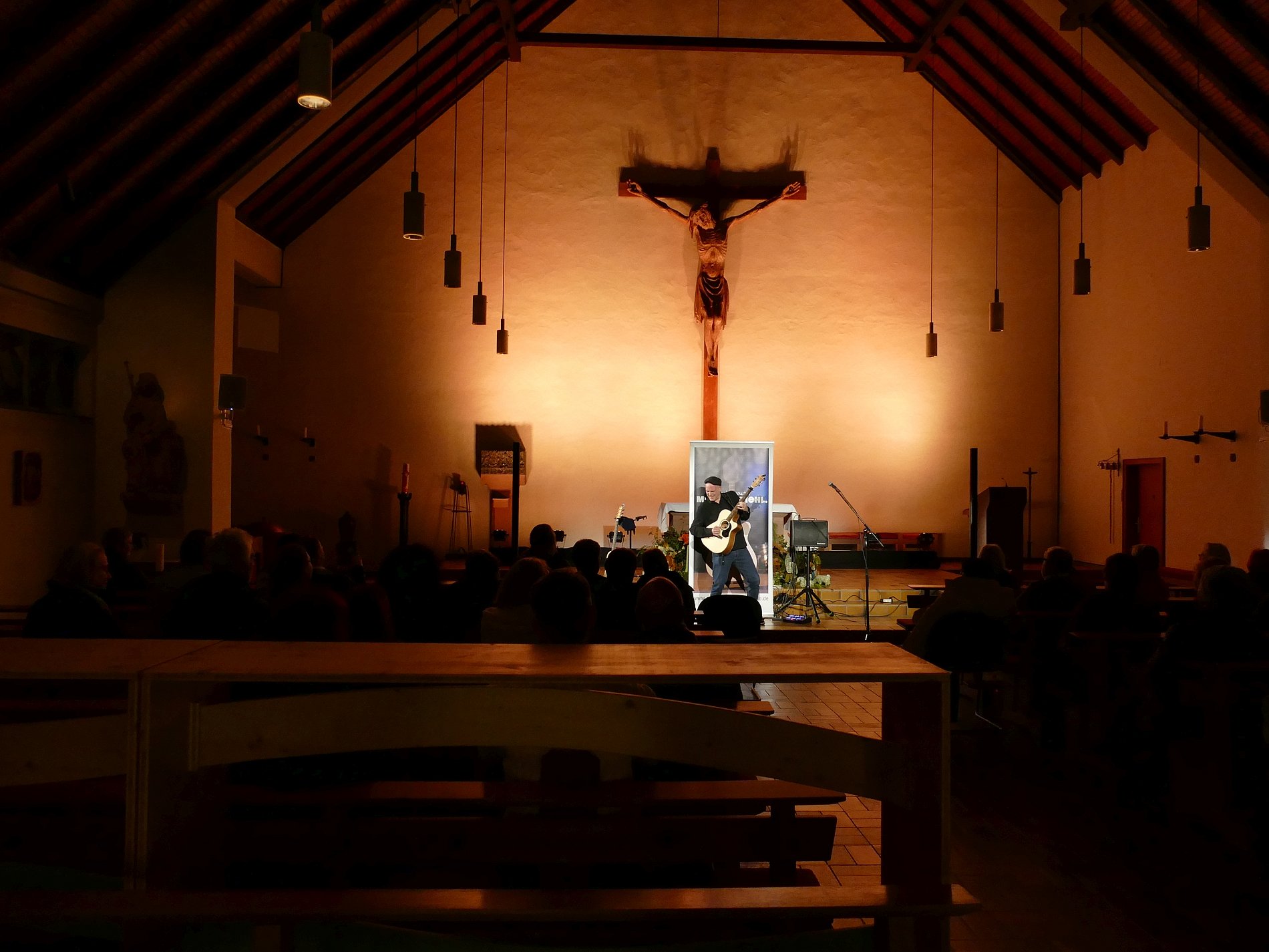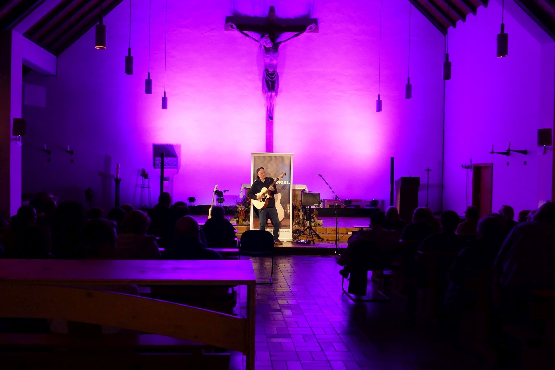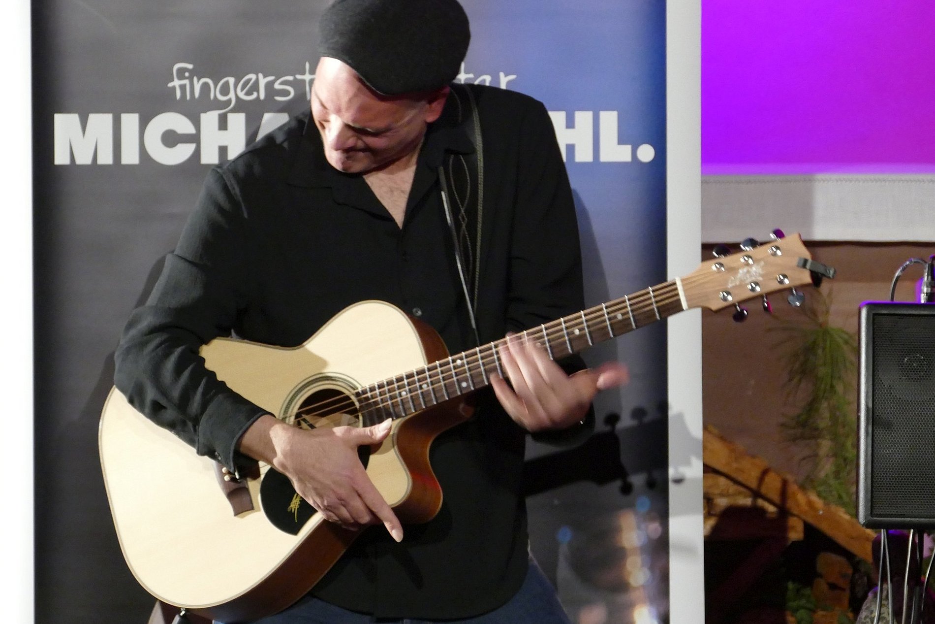 Fingerstyle Gitarrist Michael Diehl verstand es am Sonntag, 18.01.26, auf seine ganz besondere Art, die rund 60 Zuhörer:innen zu begeistern. Der musikalische Vortrag seiner Kompositionen war feinsinnig, melodisch elegant, oft perkussiv und technisch höchst versiert. Er überzeugte mit seinen berührenden Kompositionen, die ganz ohne Gesang Gefühlen und Phantasie weiten Raum boten, und einer überragenden und mitreissenden Spieltechnik. Michael liess uns in kurzen Hinführungen an seine Gedanken und Erlebnissen teilhaben, die zu neuen Songs führen: etwa Bilder von Flüchtenden auf dem Meer, Liebeskummer, Corona-Lockdowns oder eine Hommage an Gitarristenvorbilder. Nebenbei stellte er auch seine beiden australischen Maton-Gitarren eingehend vor, und wusste seine Moderationen mit Anekdoten, Wissenswertem und Nachdenklichem abwechslungsreich zu gestalten.